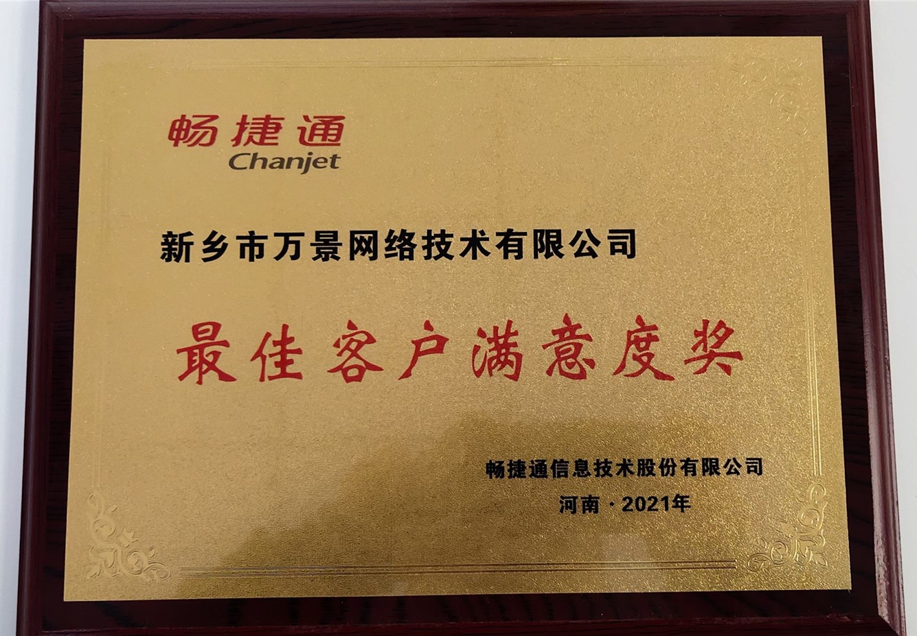 新乡万景荣获用友畅捷通颁发最佳客户满意度奖
